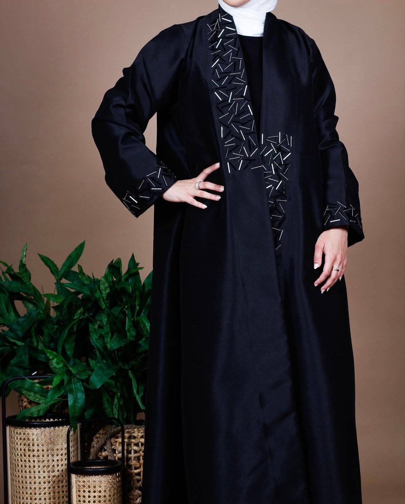 عباية فخمة مع شك يدوي باللون الأسود والفضي